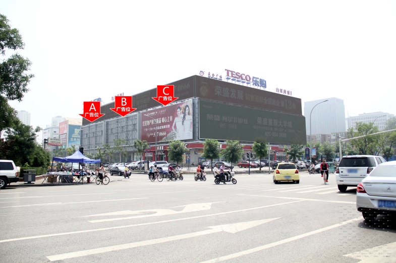 新华路乐购朝北墙面大牌